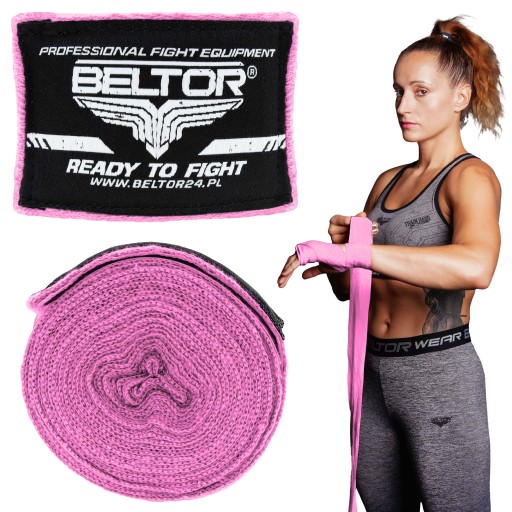 BELTOR OWIJKI BOKSERSKIE ELASTYCZNE 3M BANDAŻE TAŚMY TRENINGOWE RÓŻOWE