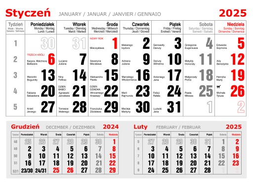 Kalendaria do kalendarza 3-DZIELNEGO – wersja BIAŁA