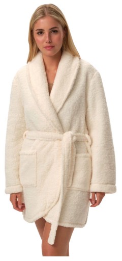 Przyjemny w dotyku, pluszowy szlafrok damski HENDERSON w eleganckim, kremowym kolorze.