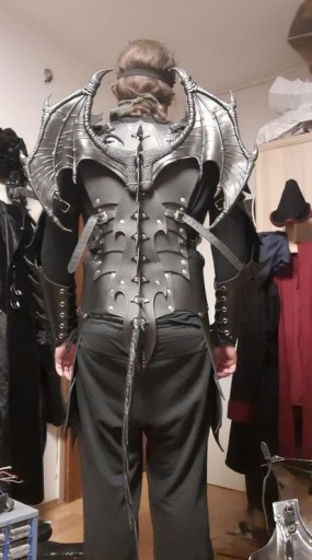 W skład stroju wchodzi maska, skrzydła i ogon.