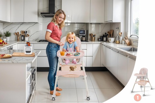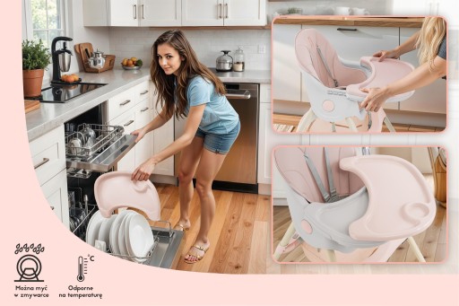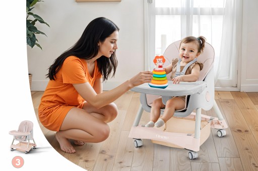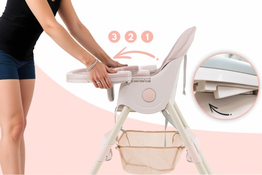 - Regulowana 3-stopniowa tacka: Możliwość dostosowania tacki do potrzeb dziecka i rodzica.