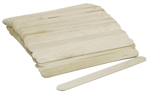 Jednorazowe drewniane szpatułki do nakładania wosku podczas depilacji.