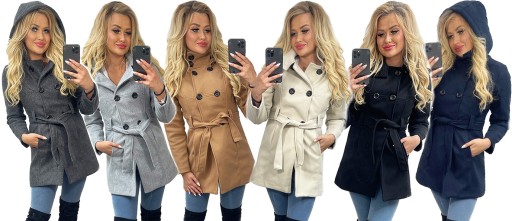 KLASYCZNY PŁASZCZ Z PASKIEM Z KAPTUREM_KOLORY_XL