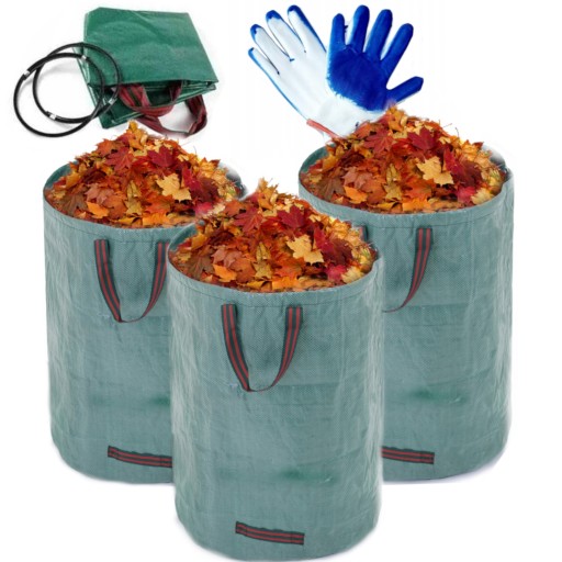 САДОВЫЕ СУМКИ НА ЛИСТЬЯХ 3 ШТ. 272Л КОРЗИНЫ ВЕТКИ ТРАВЯНОЙ МУСОР + ПЕРЧАТКИ