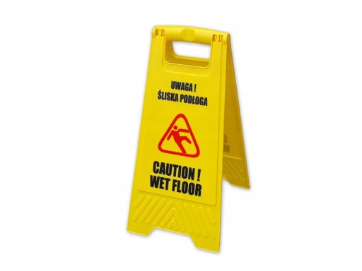 - posiada znak ostrzegawczy z polskim napisem "Uwaga śliska podłoga" a także napis w języku angielskim "Caution! Wet Floor"
