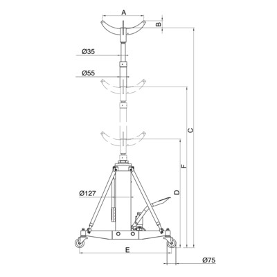 Гидравлический подъемник 1000 кг, высота 899-1899 мм, 36 движений до макс.