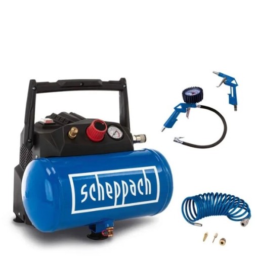 Sprężarka Scheppach 6 L HC06 z zestawem akcesoriów, 1200 W, 8 bar - bezolejowa -