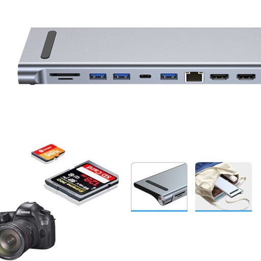 - Thunderbolt 3/USB-C do wielu portów. 2x HDMI, 1x VGA, 1x USB3.0, 2x USB2.0, 1x Type-C, 1x USB-C (tylko ładowanie), 1x gniazdo słuchawkowe audio 3,5 mm, 1x SD, 1x TF, 1x RJ45.