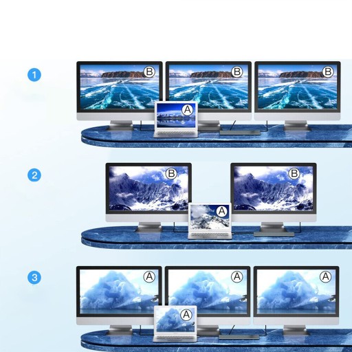 - USB-C do 3 monitorów. Obsługuje 2 x HDMI 3840x2160 przy 30 Hz, VGA 1920x1080 przy 60 Hz w trybie rozszerzonym i trybie lustrzanym w systemach Windows i Mac OS.