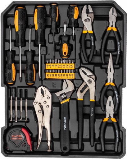 - Najważniejsza cecha tej walizki to prawidłowy dobór narzędzi. Ankieta przeprowadzona wśród 100 majsterkowiczów pomogła dobrać zestaw najczęściej używanych narzędzi! Klucze, imbusy, młotek, nóż, śrubokręty - tylko w naszej walizce jest tak maksymalnie zoptymalizowany,