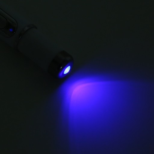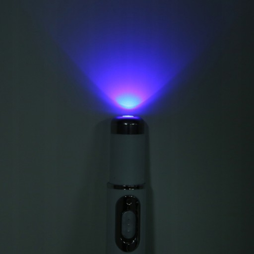3. Trzymaj w dłoni przewodzący metalowy pręt, skieruj niebieskie światło na miejsce pryszcza i postępuj zgodnie ze schematem operacyjnym, aby powoli przesuwać się w kierunku skóry i limfy
