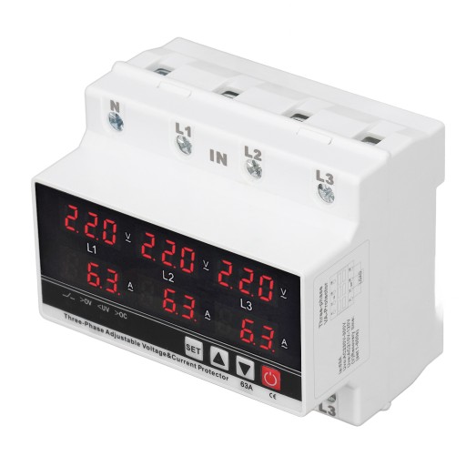 - Prąd znamionowy: 63A (regulowany zakres nadprądowy 1-63A)