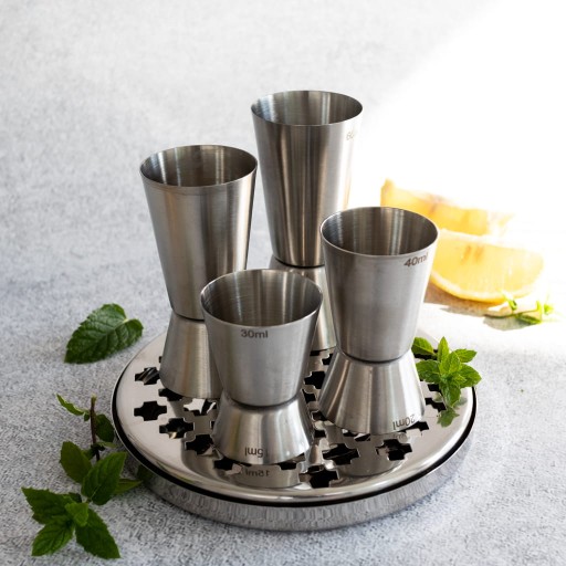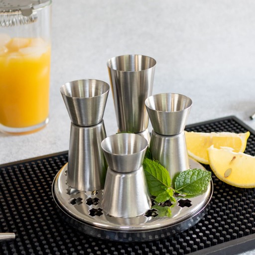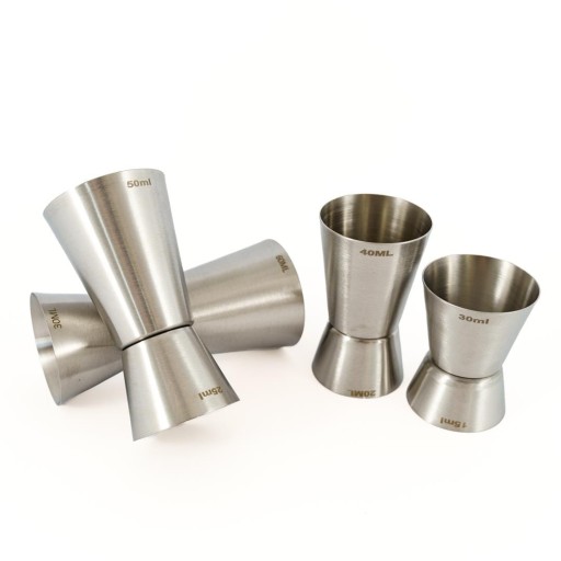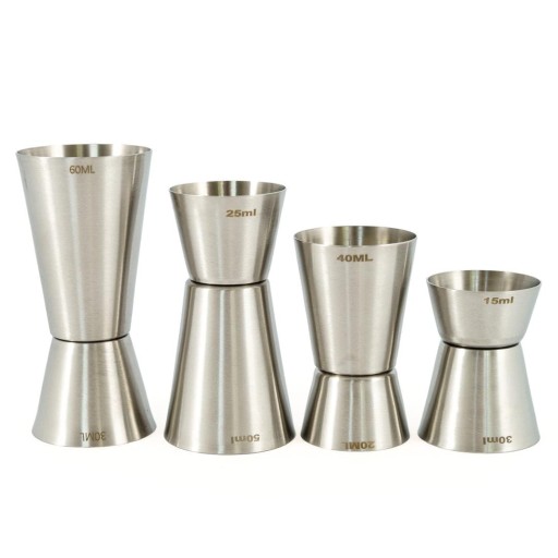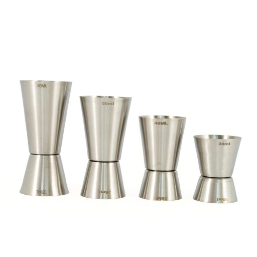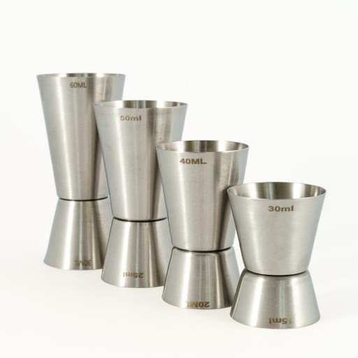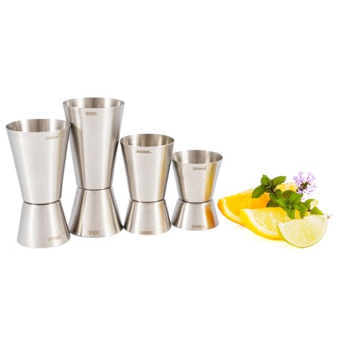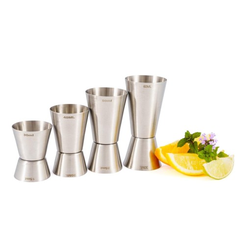 - zestaw składa się z 4 miarek barmańskich dwustronnych o pojemnościach: 50/25 ml, 40/20 ml, 60/30 ml, 30/15 ml