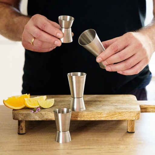 Taki zestaw miarek przyda się każdemu domowemu barmanowi! Znacząco przyspiesza on robienie drinków i zapewnia ich lepszy smak, dzięki precyzyjnie odmierzonym proporcjom.
