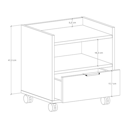 Dzięki pojemnej szufladzie oraz otwartej wnęce, zapewni on wiele miejsca do przechowywania. Pozwoli na posegregowanie dokumentów bądź materiałów biurowych z natychmiastowym dostępem do nich.