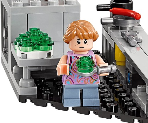 - Zestaw zawiera 4 minifigurki: Alana Granta, Ellie Sattler, Lexa Murphy'ego i Tima Murphy'ego, a także figurkę Velociraptora.