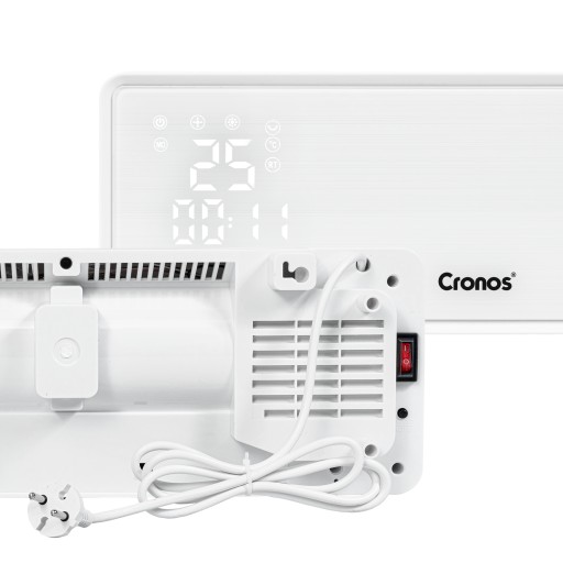Kurtyna powietrzna Cronos BPT-2000B z eleganckim białym panelem szklanym i mocą grzewczą 2 kW