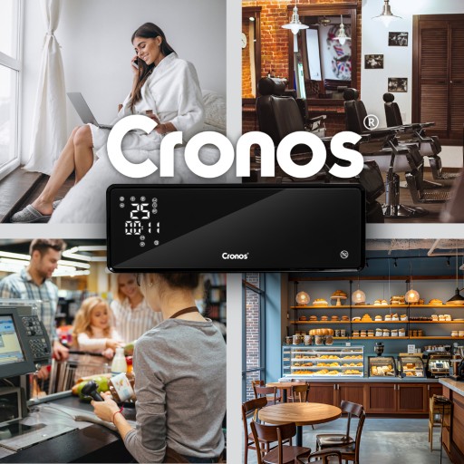 Kurtyna powietrzna Cronos BPT-2000B z eleganckim czarnym panelem szklanym i mocą grzewczą 2 kW