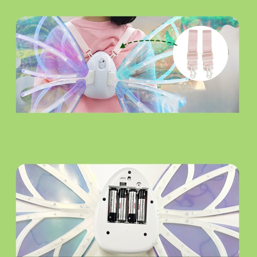 Zabawka ze skrzydełkami jest wyposażona w regulowany pasek pasujący na ramiona 4–12 dzieci i kobiet. Długość jest na tyle długa, że nie musisz się martwić o uciskanie ramion. Miękkie paski są również bardzo lekkie, dzięki czemu dziewczęta mogą nosić skrzydła bez uczucia ciężkości.