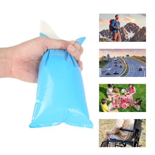Duża pojemność i łatwość użycia: worek na mocz może być używany przez ok. 2 godz. 600 ml. W normalnych warunkach wydalanie moczu u ludzi wynosi od 300 ml do 600 ml. 12 worków ratunkowych, 12 niebieskich worków na śmieci, 1 worek łonowy. Duży worek na śmieci służy do delikatnego obchodzenia się z woreczkiem po oddaniu moczu.