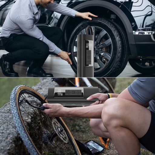 - W porównaniu z innymi przenośnymi pompami powietrza, które są zasilane tylko bateriami i można ich używać dopiero po pełnym naładowaniu, rozwiązaliśmy ten problem.