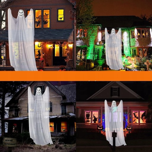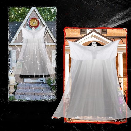 - Ta dekoracja na Halloween z wiszącym duchem zawiera przerażającą, przerażającą maskę ducha i białe zasłony, które dodają upiornego efektu dekoracji. Niezależnie od tego, czy dekorujesz wnętrze i na zewnątrz, drzwi, korytarze, sufity, drzewa na podwórku, możesz stworzyć upiorną atmosferę w dowolnym miejscu.
