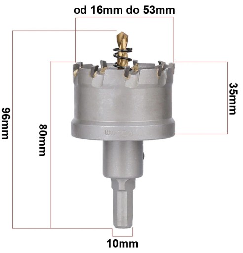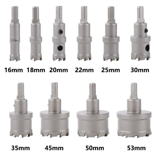 - 10 szt. otwornic o średnicach:16mm, 18mm, 20mm, 22mm, 25mm, 30mm, 35mm, 45mm, 50mm, 53mm