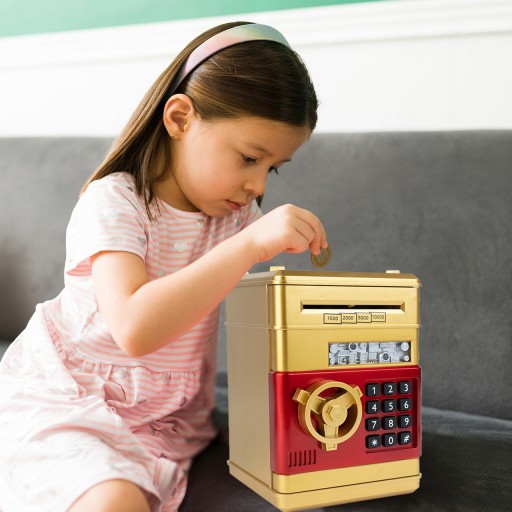 Oferujemy kolorową skarbonkę w kształcie sejfu z elektronicznym kodem! Dzięki niej Twoje dziecko nauczy się oszczędzania oraz planowania wydatków. Skarbonka przyjmuje automatycznie papierowe pieniądze oraz monety. Wystarczy, że przyłożysz banknot do wlotu, a sejf pobierze pieniążek automatycznie!