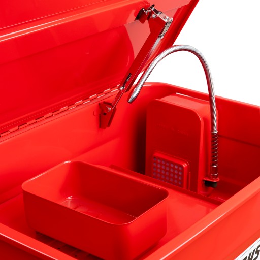 Ciecz pobierana jest przez pompę z dna w obiegu zamkniętym i podawana dalej pod ciśnieniem przez elastyczny wąż. Zatem, czy to smary, resztki oleju czy nawet pozostałości po obróbce materiałów, wszystkie zabrudzenia łatwo usuniesz!