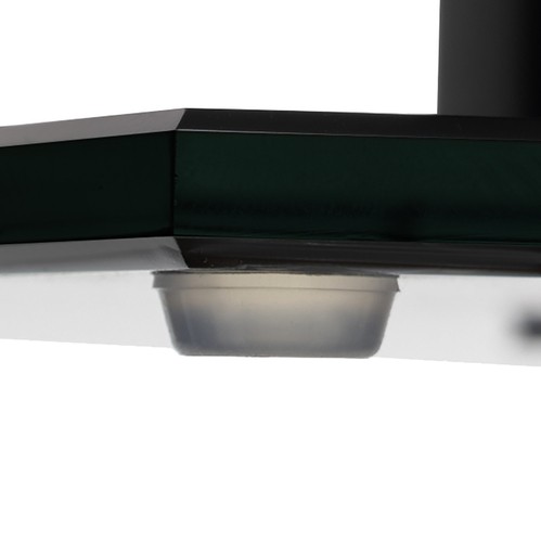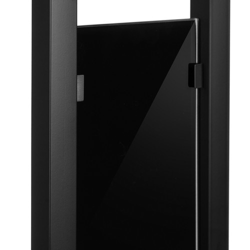 - UNIKALNE ELEMENTY SZKLANE - centralnym elementem stojaka jest czarna, lustrzana ścianka wykonana ze szkła, która nie tylko dodaje elegancji, ale również pełni funkcję dekoracyjną. Lustrzane wykończenie szkła nadaje produktowi nowoczesnego charakteru, a matowy tył lustrzanej ścianki harmonizuje z pozostałymi matowymi elementami stojaka. Podstawa stojaka również wykonana jest z czarnego lustrzanego szkła, co nie tylko podkreśla jego nowoczesny design, ale również zapewnia stabilność i trwałość całej konstrukcji.