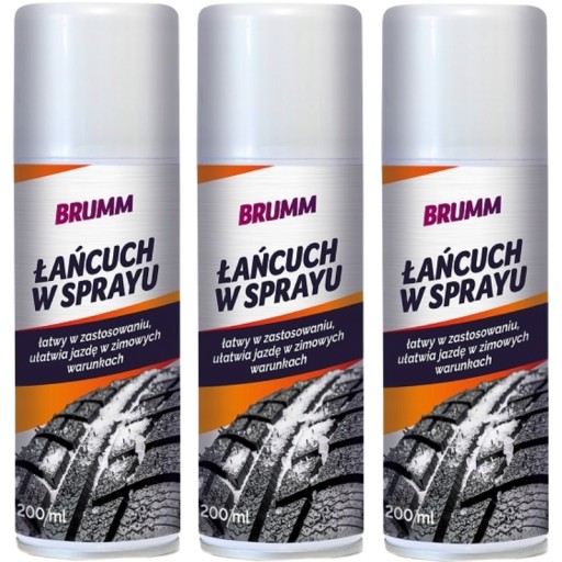 Łańcuch w sprayu BRUMM to nowoczesne rozwiązanie zwiększające przyczepność opon do zaśnieżonych lub oblodzonych dróg.