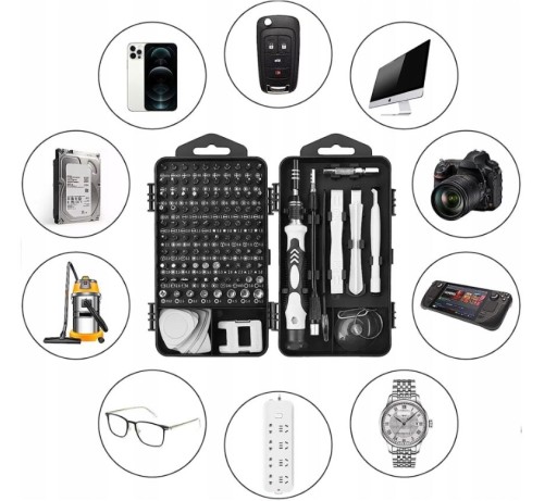 - uniwersalny komplet narzędzi, do użytku domowego oraz komercyjnego, przydatny do naprawy smartfonów, komputerów PC i innych