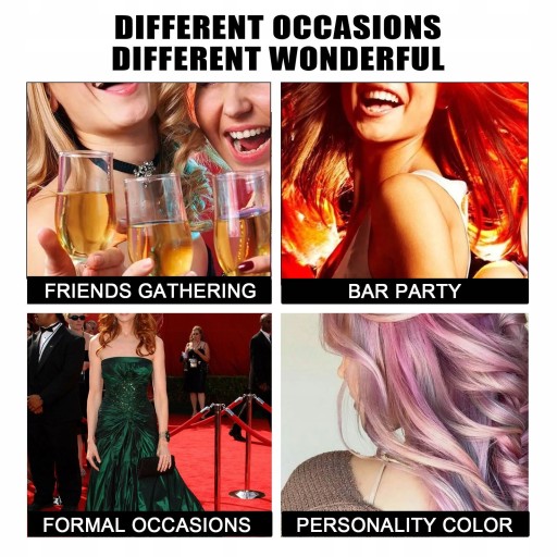 4. Możliwość zastosowania: ten zmywalny tymczasowy kolor włosów jest idealny do dodania idealnej puenty do kostiumów na Halloween, imprezy sportowe, festiwale muzyczne, imprezy tematyczne i nie tylko.