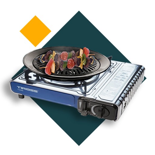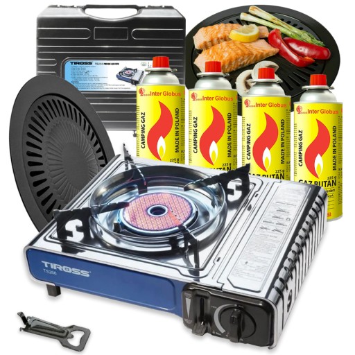 ТУРИСТИЧЕСКАЯ ГАЗОВАЯ ПЛИТА керамика ТИРОСС ТС-266 с ГРИЛЕМ + 4х КАРТРИДЖА