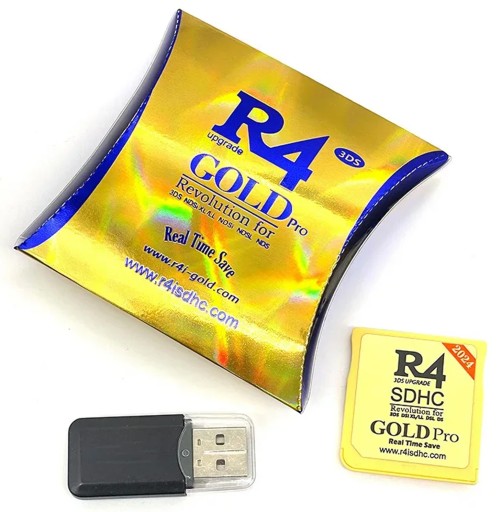 Nowa, oryginalna karta R4i Gold Pro SDHC z funkcją RTS przeznaczona do konsol Nintendo 3DS, 3DS XL, New 3DS, New 3DS XL, 2DS, New 2DS XL, DS, DSi, DSi XL. Dzięki karcie można uruchamiać na swojej konsoli aplikacje typu homebrew oraz kopie gier (romy). W zestawie czytnikiem kart pamięci microSD.