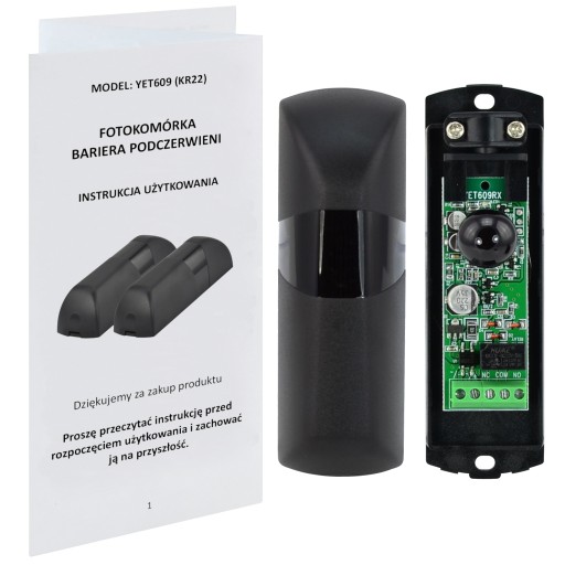 Zestaw składa się z nadajnika, odbiornika i elementów montażowych.