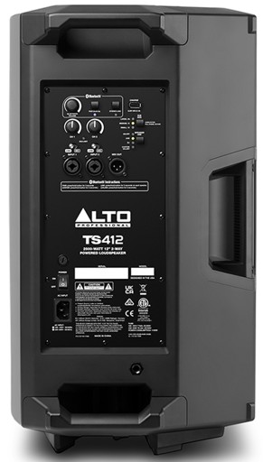 - Elementy sterujące: Przełącznik zasilania, (2) pokrętła regulacji wzmocnienia (1 na wejście), (2) przełączniki Mic/Line, pokrętło regulacji głośności Bluetooth, przycisk parowania, przycisk Stereo Link, przycisk Sub Size, przycisk Speaker Use