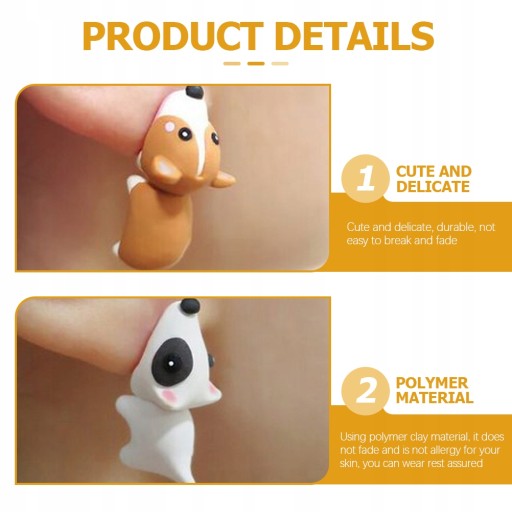 Te kolczyki dla kobiet wykonane są z gliny polimerowej, co zapewnia bezpieczne i trwałe użytkowanie bez łatwego blaknięcia, można je nosić do ozdabiania uszu. Delikatny wygląd zwierząt sprawi, że ten kolczyk będzie bardziej czarujący. Może być używany nie tylko do dekoracji uszu, ale także jako dobry prezent dla twoich przyjaciółek.