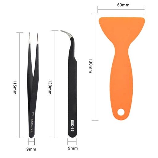 Czyszczenie i pincety: Czyszczenie dysz 3D wykonane jest ze stali nierdzewnej, mocne wielokrotnego użytku i łatwe do skręcenia, niepowlekane pincety nadają się do naprawy cienkich drutów, śrub spawalniczych i płytek drukowanych oraz operacji obwodu integracyjnego o dużej gęstości