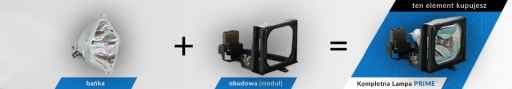 - Lampa zamienna PRIME to wariant kompletny nie wymagającym przekładania bańki ani wielkiego kombinowania. Zakup i wymiana takiej lampy w projektorze to wymontowanie starej zużytej lampy i zamontowanie nowej, jest to najprostsza z możliwości, rozumiemy jednak, że nie każdy lubi kręcić śrubokrętem, lub może napotkać jakieś problemy.