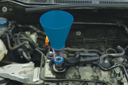 LASER TOOLS Uniwersalny lejek o śr. 125 mm i sprężynowy zacisk do nalewania bez użycia rąk. Przezroczysta wylewka ułatwia kontrolę przepływu cieczy, a jej stopniowanie wynosi od 50 mm do 40 mm z wylotem 20 mm, co zapewnia wydajne napełnianie. Zacisk można również dopasować do innych rozmiarów lejka, co jest innowacyjną konstrukcją zapewniającą szybkie, łatwe i bezwyciekowe uzupełnianie cieczy.
