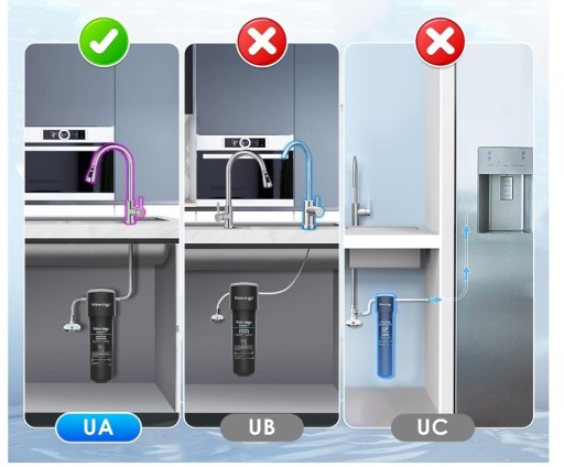 [Szerokie zastosowanie] System filtracji został stworzony do użytku domowego i komercyjnego i może być zainstalowany w kuchni, łazience, kamperze lub biurze, aby zaspokoić codzienne potrzeby wodne. Ten filtr podzlewowy jest najlepszym wyborem do wynajmowanego mieszkania dzięki swojemu eleganckiemu designowi i kompaktowym rozmiarom. Jest idealny do picia, gotowania, pielęgnacji skóry i czyszczenia. Odpowiedni jest do kranów z gwintem FEMALE NPT o średnicy 1/2" lub 3/8". Proszę skontaktować się z nami przed dokonaniem zakupu, jeśli potrzebny jest gwint żeński do połączenia z Twoim kranem.