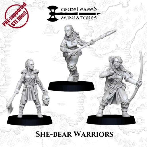 She-Bear Warriors x3 - Usługa Druku 3D Figurki do RPG lub Gier Bitewnych