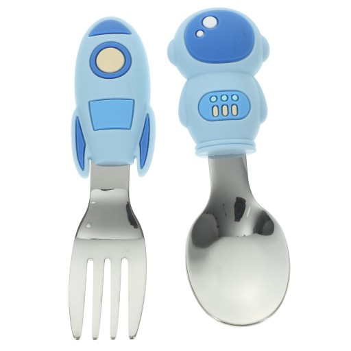 1 КОМПЛЕКТ ЛОЖКА ДЛЯ МАЛЫШЕЙ, ВИЛКА, СИЛИКОНОВАЯ РУЧКА, НЕРЖАВЕЮЩАЯ СТАЛЬ.