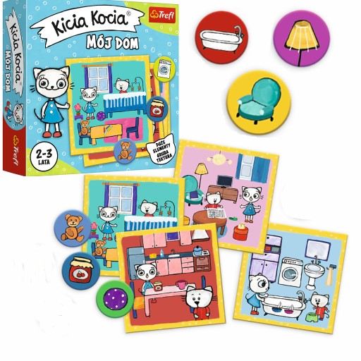 "Mój dom" to gra, w której maluchy uczą się przyporządkowywać przedmioty do poszczególnych pomieszczeń w domu. Popularna i lubiana przez dzieci postać Kici Koci sprawia, że dzieci z chęcią sięgnął po grę i będą odkrywać świat wokół siebie i uczyć się nowych rzeczy.