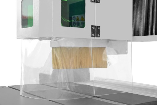 - Posiada rowki teowe umożliwiające ręczne mocowanie materiału o wymiarach 1500 x 3000 mm,