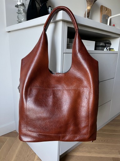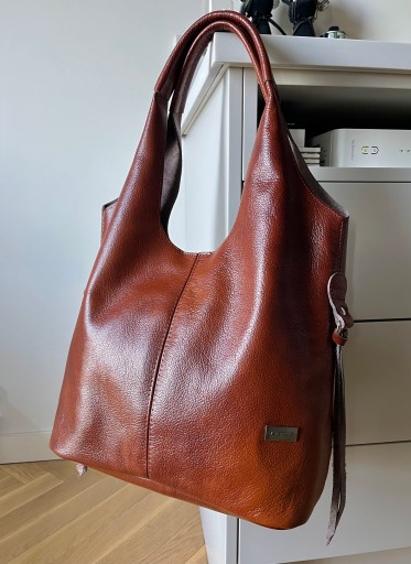 Modna i poręczna skórzana torebka worek shopper wykonana z wysokogatunkowej miękkiej naturalnej skóry.