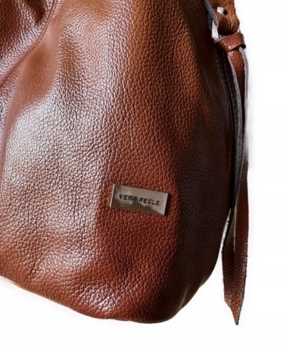 Vera Pelle BRĄZOWA KONIAKOWA klasyczna skórzana torebka damska shopper A4 2w1