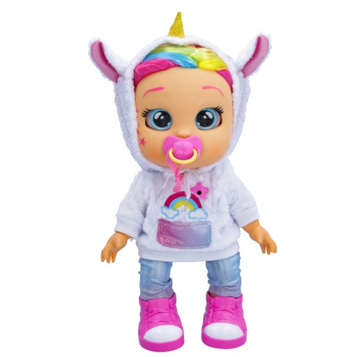 i tak jak wszystkie Cry Babies, płacze prawdziwymi łzami, gdy nie ma smoczka. Włóż go z powrotem, a przestanie płakać!