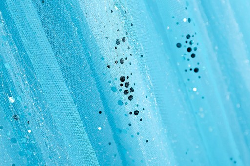 - dół sukni uszyty z 2 warstw: niebieski satynowy materiał i prześwitująca srebrzysta tkanina